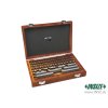 Súprava obsahuje koncové mierky (Johansonove mierky) s rozsahom od 1,001 do 100 mm značky INSIZE vyrobené z legovanej ocele - 46 ks triedy 0