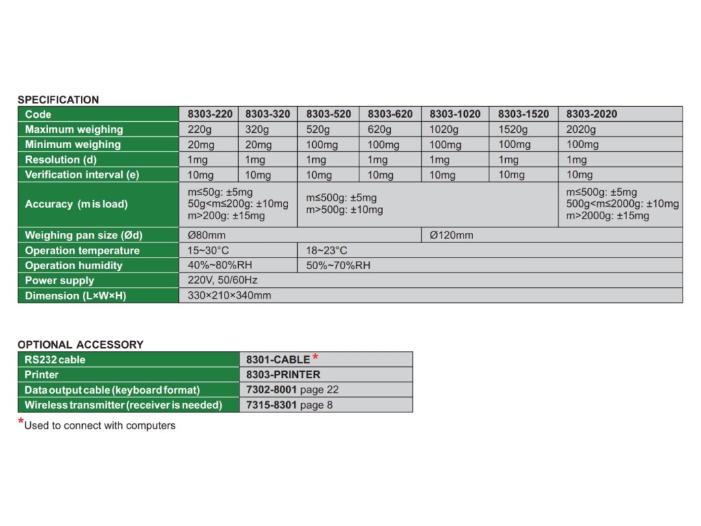 Delenie: 1 mg, Maximálna váživosť: 220 g, Minimálna váživosť: 20 mg