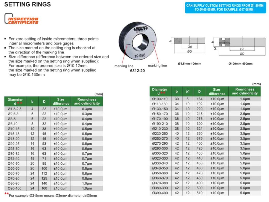 Nastavovací krúžok s priemerom 22 mm s deviáciou ±10 µm od spoločnosti INSIZE pre nastavenie nuly u mikrometrov, trojdotykových dutinomerov a hĺbkomerov.