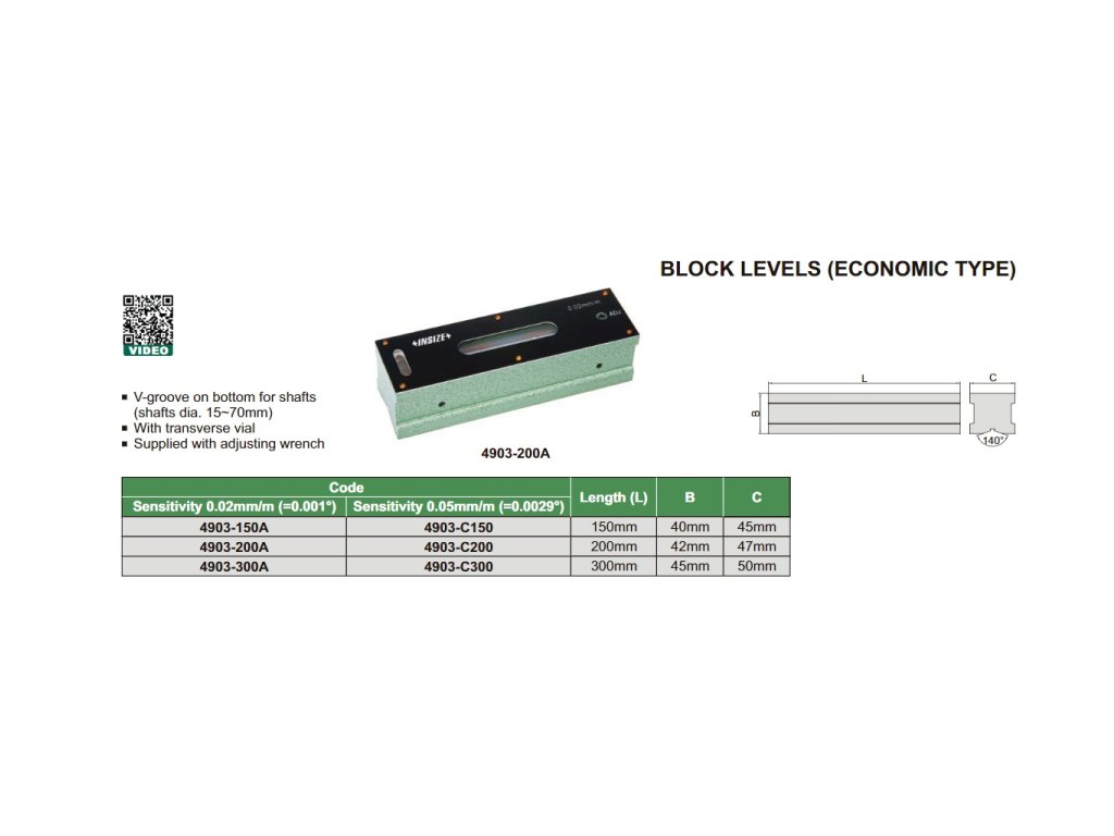 Strojná vodováha značky INSIZE s dĺžkou 150 mm a s delením 0,02mm/m. V-drážka v spodnej časti meradla.