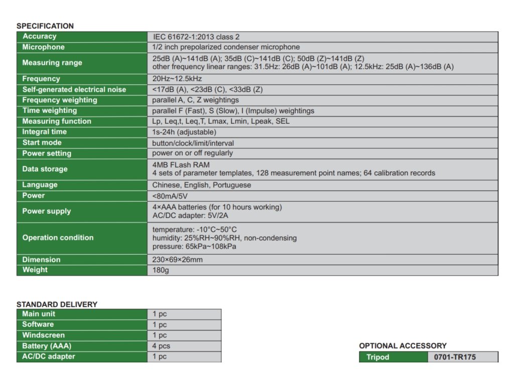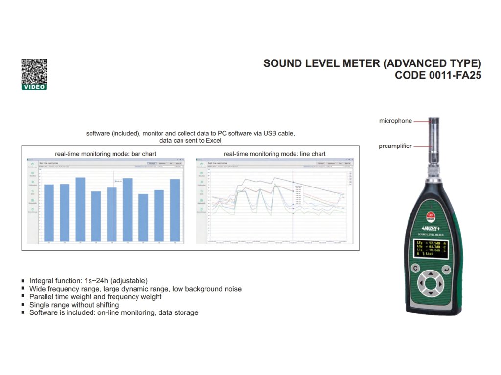- Lp, Leq, t, Leq, T, Lmax, Lmin, Lpeak, SEL