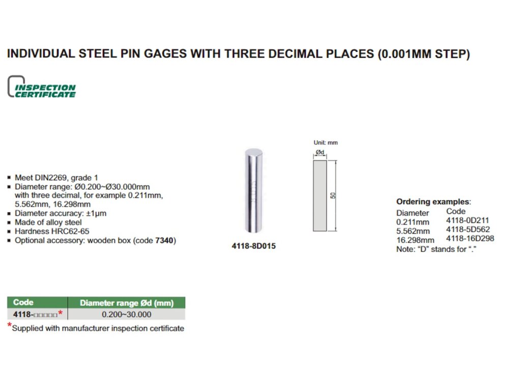 Valčeková mierka 7,99 mm, tr. pr. 1 INSIZE