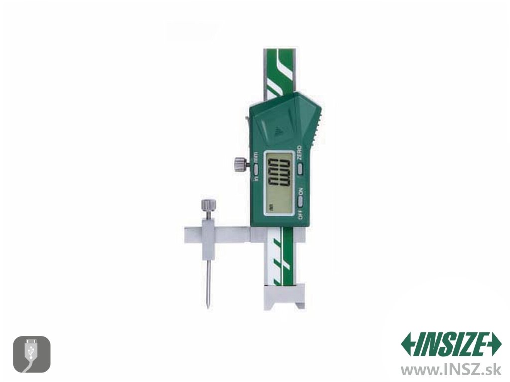 Špeciálny výškomer INSIZE v miniatúrnom prevedení. Vykrojená základňa, rozsah 0~20 mm, rozlíšenie 0,01 mm, presnosť ± 0,02 mm. S výstupom dát cez USB.