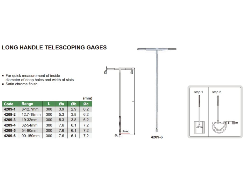 - Teleskopický merací kaliber s dlhou rukoväťou